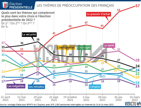 Il est finalement assez logique que cette thématique soit la principale abordée par les candidats, il s’agit en effet de la première source de préoccupations des Français (57%) loin devant la santé et la sécurité.